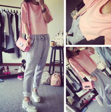 春夏新款韩版女装休闲时尚运动短袖T恤哈伦裤两件套装学生衣服潮