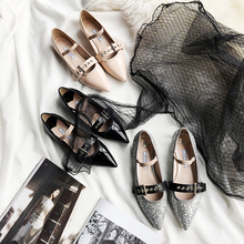 【老果家】单鞋女春天2017新款尖头玛丽珍鞋真皮平底百搭亮片浅口
