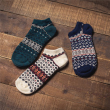 男士原单 日系粗线拼色男士全棉短袜 余文乐款复古民族风男船袜子