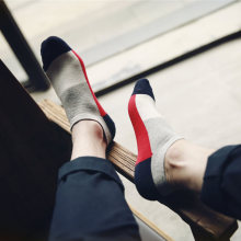 袜子男短袜 时尚撞色拼接男士休闲船袜文艺男出街休闲短筒全棉袜