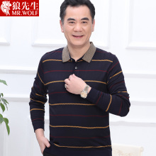 狼先生冬装新款纯羊毛衫男中年圆领加厚毛衣爸爸装秋冬季男装