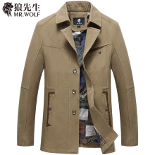 狼先生冬装毛呢子大衣加厚风衣中长款中年男装外套秋冬季爸爸男装