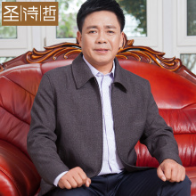 圣诗哲秋冬款男装中年男士羊毛呢大衣男中老年立领呢子外套爸爸装