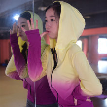 渐变色户外运动跑步上衣女瑜伽外套拉链长袖连帽开衫