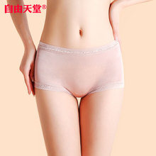 自由天堂桑蚕丝真丝内裤无痕大码中高腰平角裤女士蕾丝边三角裤头