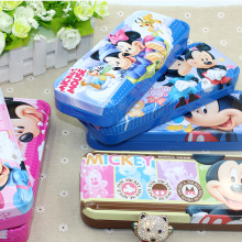 包邮迪士尼可爱创意铅笔盒小学生男 女双层多功能文具盒铁