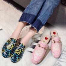 2017夏季新款女鞋潮流时尚舒适平底毛边大口装饰女拖鞋脚印闷拖