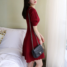 金渔木渔花瓣领修身中长款冰丝针织连衣裙夏一字肩显瘦A字小黑裙