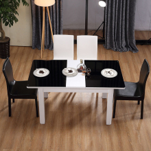 钢化玻璃餐桌现代简约方形客厅饭桌伸缩折叠拉伸烤漆餐桌桌椅组合