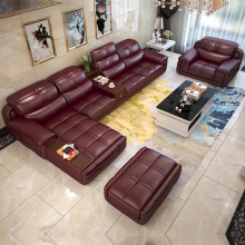 现代简约真皮沙发头层牛皮客厅组合家具 多功能充电储物沙发