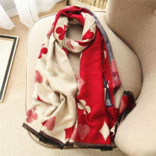 女王节礼物保暖围巾女冬天扑克图案仿羊绒双面红色披肩长款围巾