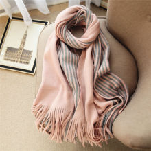 仿羊绒毛线围巾女冬天披肩两用 竖条拼接流苏加厚保暖针织大围巾