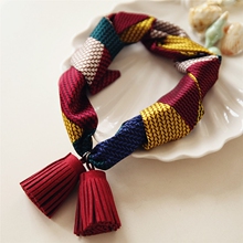 新款小领带 流苏挂坠碎花小领巾丝巾头巾波点条纹雪纺围巾女