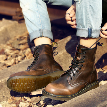 冬季加绒保暖情侣真皮男士马丁短靴高帮内增高韩版潮流工装棉靴子
