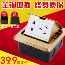 全铜五孔地插 无阻尼液压式 速弹加厚铜五孔地板地面插座送底盒