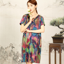 桑蚕丝睡衣外穿女民族风夏真丝睡裙桑蚕丝休闲宽松大码家居服V领