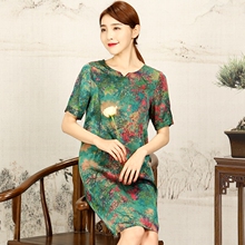 重磅真丝印花连衣裙中短款夏天修身祺袍裙高档桑蚕丝包臀OL裙子