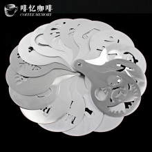 啡忆 花式咖啡图案拉花模具套装 铝制金属印花喷花模板模型16件套