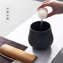 茶渣筒日式茶碗小水洗茶道茶洗粗陶茶渣桶窑变铁釉功夫茶具方建水