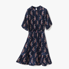 LY2 17早春款 宝蓝色 老虎印花 五分袖 束腰露背 真丝 连衣裙