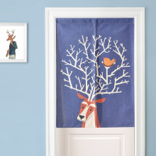 北欧风麋鹿棉麻布艺门帘窗帘客厅半帘隔断玄关帘风水帘卧室装饰帘