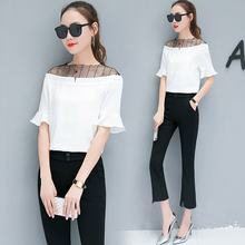 时尚套装女士喇叭裤两件套2017夏季新款韩版潮气质雪纺上衣职业装
