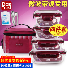 创得保鲜盒4件套装微波炉专用饭盒 玻璃保鲜盒冰箱密封碗便当盒