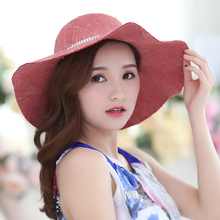 帽子女夏天 2017出游海边沙滩帽韩版时尚遮阳帽宽檐仿真丝太阳帽