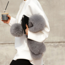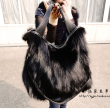 高端秋冬新款皮草包包进口狐狸毛单肩斜跨简单欧美 黑色海宁女包