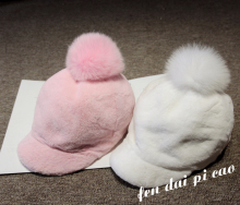 韩版帅气獭兔毛整皮骑士帽狐狸毛球鸭舌帽皮草帽子女士保暖帽