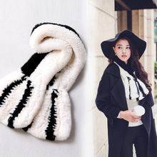 减龄利器黑白配韩版秋冬优质獭兔毛双面围巾围脖保暖兔毛皮草围巾