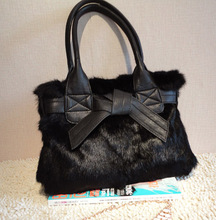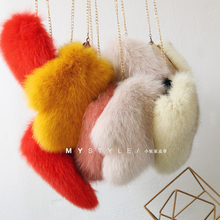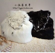 韩版新款兔毛皮草包包大牌蝴蝶结收口皮草水筒包真毛手提链条女包