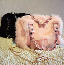 (小依家)新款兔毛链条手提枕头皮草包包兔毛筒包黑色粉色定型包