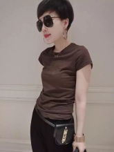 缘分天空欧洲站2016春夏款欧范时尚净色短袖修身T恤上衣 女88
