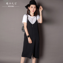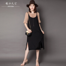 欧洲站背带裙两件套2017夏季新款韩版中长款开衩吊带连衣裙套装裙