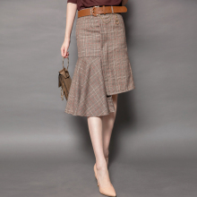 欧洲站2016秋装新款时尚格子显瘦百搭不规则潮包臀鱼尾裙半身裙女