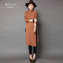 欧洲站欧美新款韩版百搭显瘦开叉长袖中长款针织衫女针织连衣裙