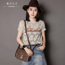 欧洲站2017夏装新款韩版女装刺绣镂空短袖蕾丝衫气质百搭T恤