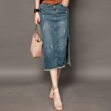半身牛仔裙高腰韩版中长款开叉牛仔裙修身流苏牛仔裙包臀a字