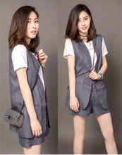女士欧货套装2016春夏装新款韩版女装时尚修身套装西装马甲短裤女