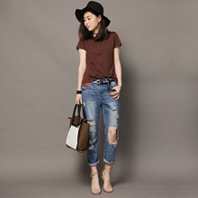 欧洲站2016春装新款欧货潮女装百搭修身简约3色纯色短袖T恤女