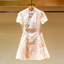 夏装2017新款女复古旗袍式绣花连衣裙拼接网纱蓬蓬裙A字裙时尚潮