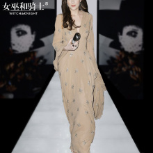 女巫欧洲站2017春装连衣裙麂皮绒欧美时尚修身名媛走秀款高端女装