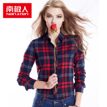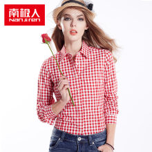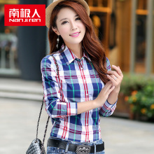 南极人格子衬衫女长袖2017韩版时尚修身纯棉薄款大码学生女衬衣