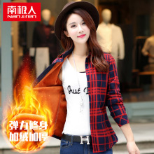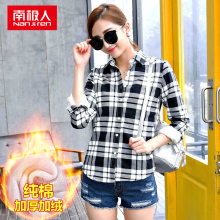 南极人2016冬季加绒加厚保暖格子衬衫长袖女学生纯棉打底衬衣外套