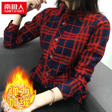 南极人秋冬季纯棉长袖格子保暖衬衫女加绒加厚韩版修身大码衬衣女