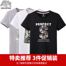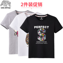 初己 潮牌印花加肥大码青少年男生短袖T恤 纯棉宽松夏季男装半袖