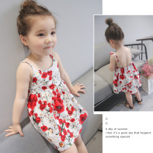 童装女童连衣裙 2017夏季新款小童印碎花漏背裙宝宝休闲吊带裙