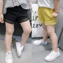 小童装女童2017年夏季新品时髦棉麻蕾丝花边短裤女宝宝休闲热裤