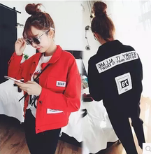 2016春装新款韩版学院风宽松BF童趣贴布字母印花撞色工装外套女潮